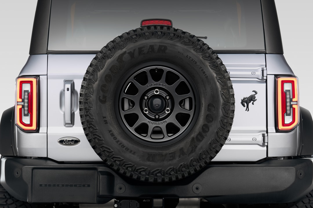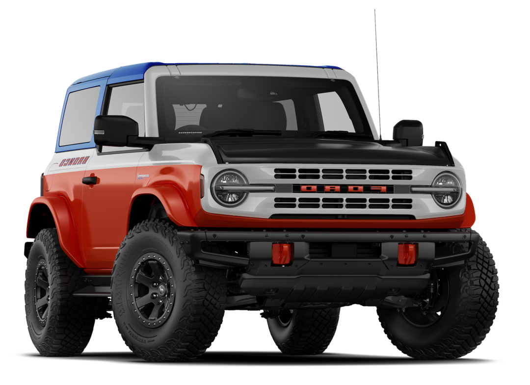 The exterior of the Ford Bronco presents a bold, purposeful look that stands out on any road or trail. Offered in two-door and four-door versions, it includes a removable manual targa composite roof that allows open-air driving. The manual convertible hardtop, equipped with a glass rear window and fixed rollover protection, combines safety with stylish design.