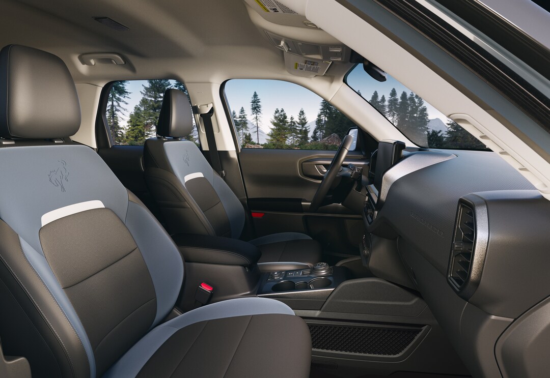 The Ford Bronco's interior combines rugged utility with daily comfort. It seats four to five people, depending on the model, featuring options from sturdy cloth and marine-grade vinyl to luxurious leather trim. The rear seats, split 60-40 or 50-50, offer versatile space for cargo or passengers.