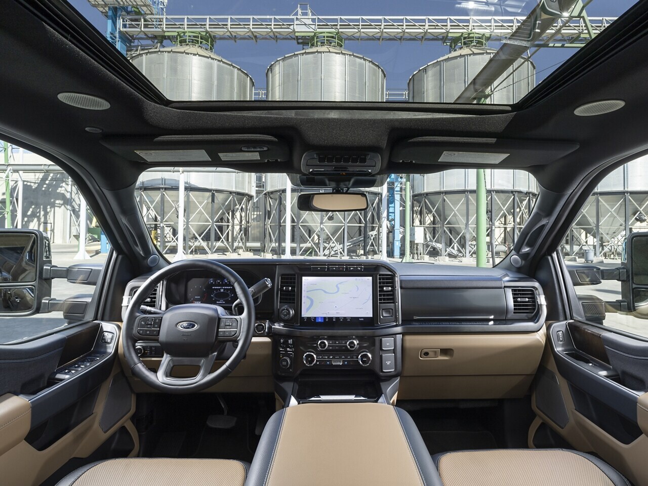 Step inside the spacious cabin of the 2024 F-350 DRW, and you'll find a refined interior designed for both productivity and comfort. Seating options range from durable vinyl to premium leather in a choice of 40/20/40 split bench or bucket configurations.