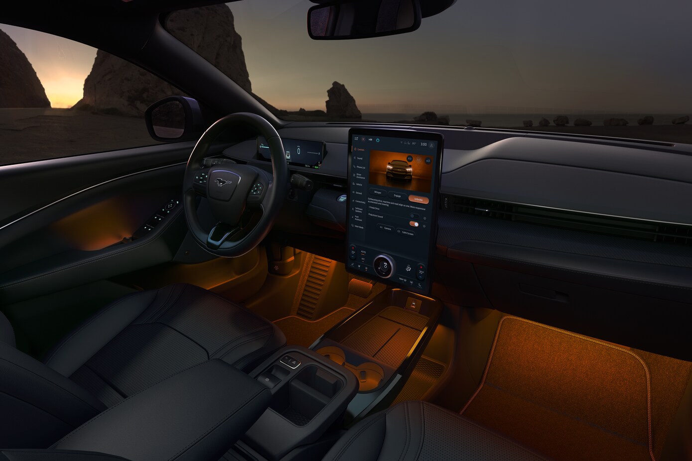 Choose from a vibrant palette of exterior colors for your Ford Mustang Mach-E. Options include Rapid Red Metallic, Grabber Blue Metallic, Shadow Black, and more. The interior can be outfitted with leather or ActiveX seating in colors like Light Space Gray or Performance Gray.